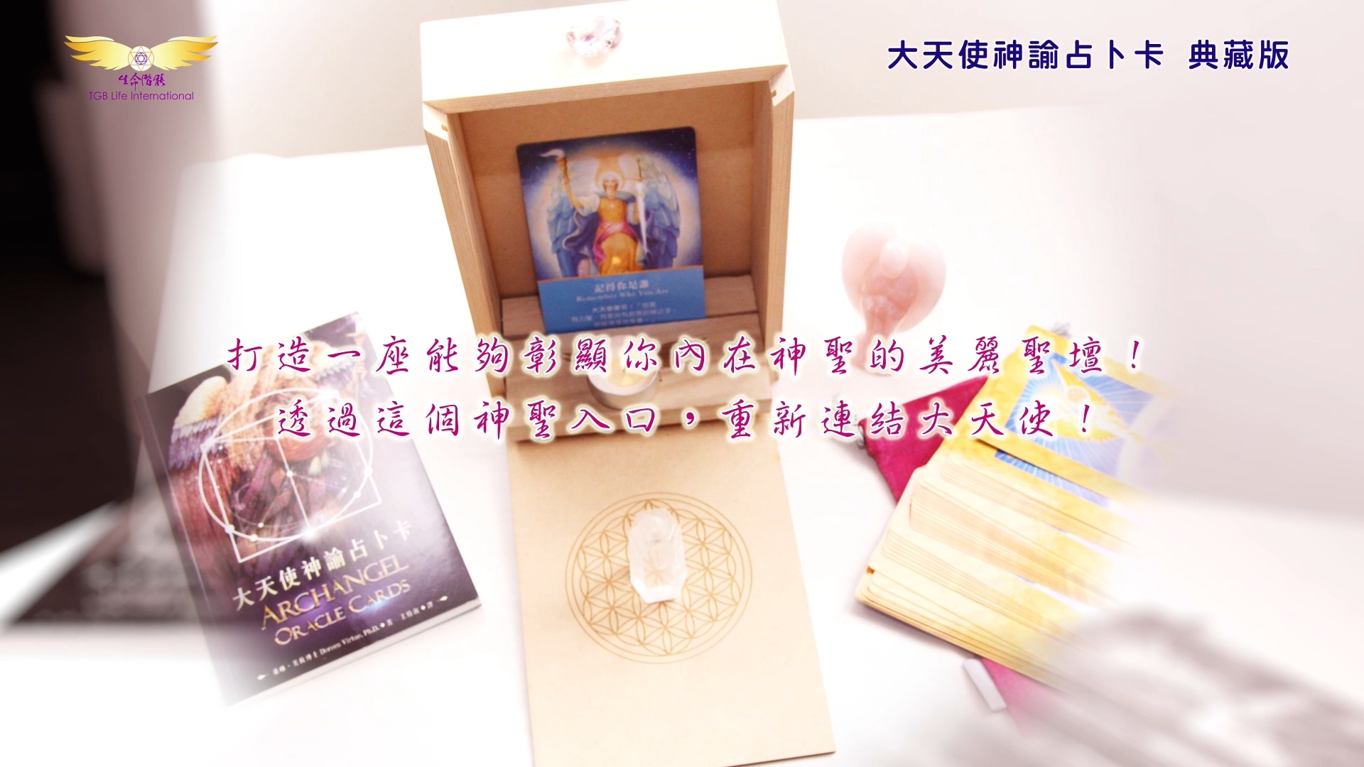 《大天使神諭占卜卡》典藏版,限量發行333套,以美國檜木製作,外層雷射雕刻出大天使麥可的形象,內層則是神聖幾何的生命之花;《大天使神諭占卜卡》典藏版可做為打造個人聖壇的基底,幫助我們展開神聖空間,與神聖源頭連結,聖壇內設計可放置牌卡的溝槽,我們可抽牌連結大天使,放在聖壇上,做為每日的靈性指引。